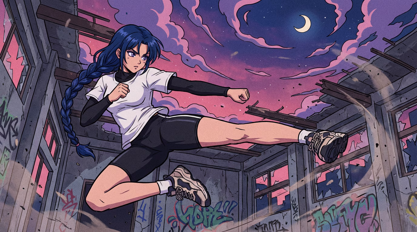 ![]() | The night scene of ruins, swirling purple-pink clouds, a waning moon hanging high, pebbles and dust floating in the air—the overall atmosphere is tense, suspenseful, and about to explode. The music is a Japanese anime opening theme style electronic rock/powerful drumbeats, with a lower tempo in the first half, reaching a climax in a strong chorus. |